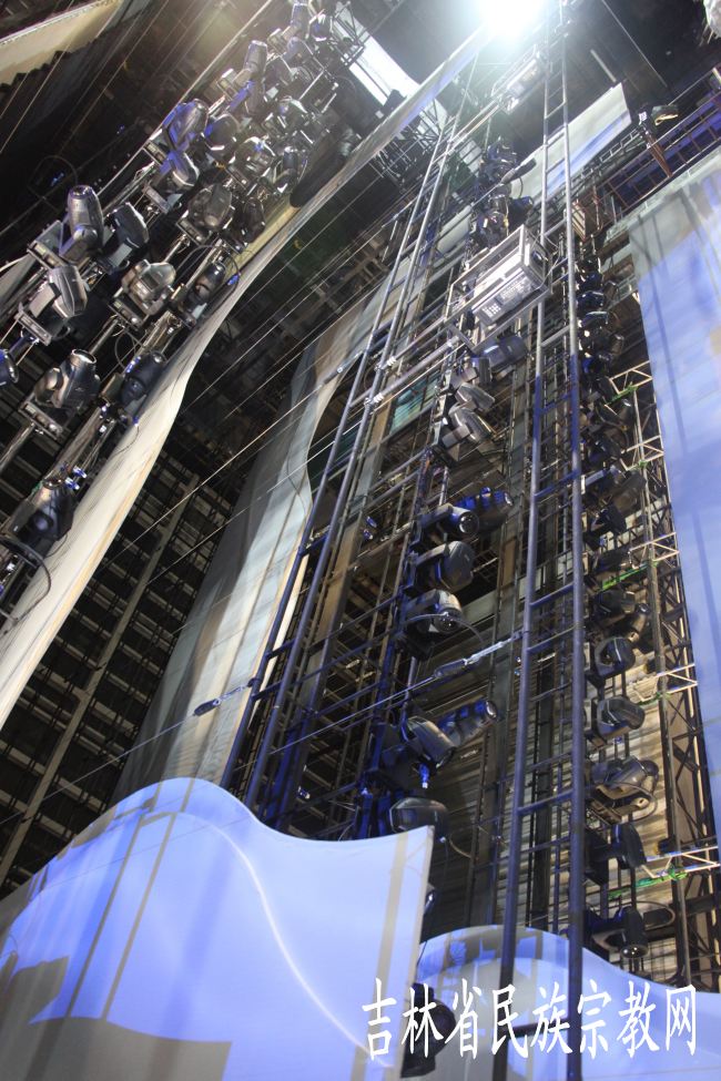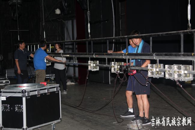 延边歌舞团技术人员调试舞台灯光