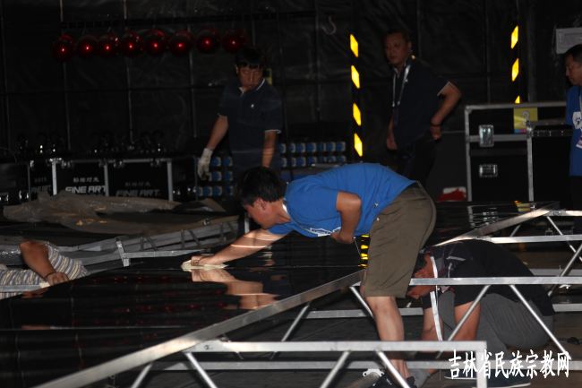 延边歌舞团技术人员组装表演道具(二)