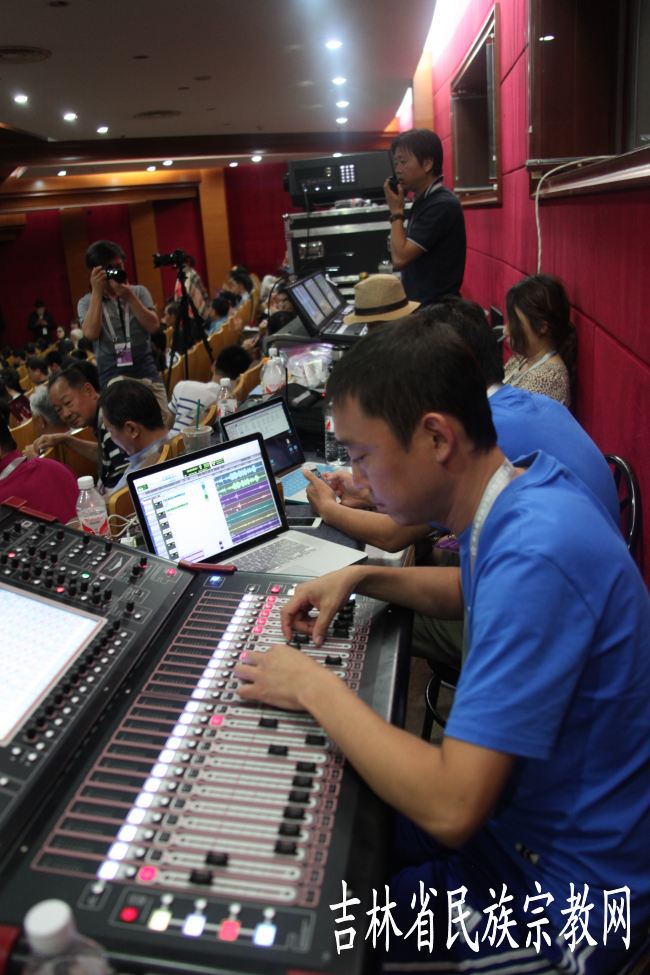 延边歌舞团技术人员调试音响