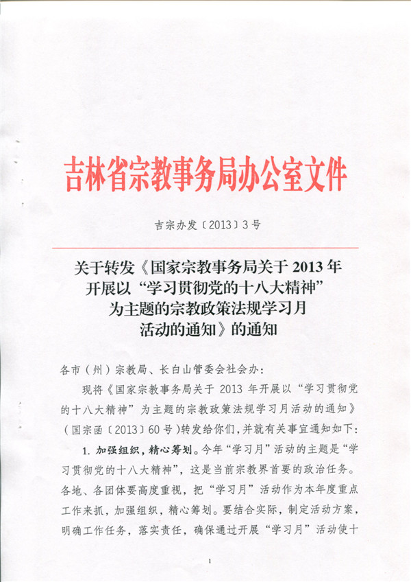 关于印发《吉林省寺观教堂和其他固定宗教活动处所区分标准》的通知11-24