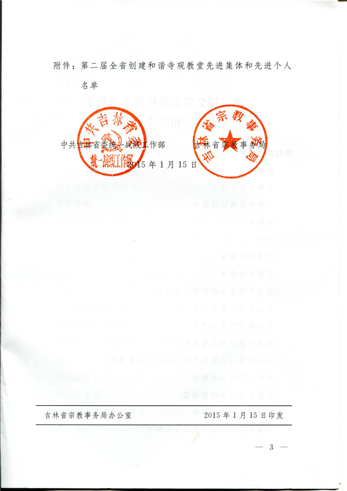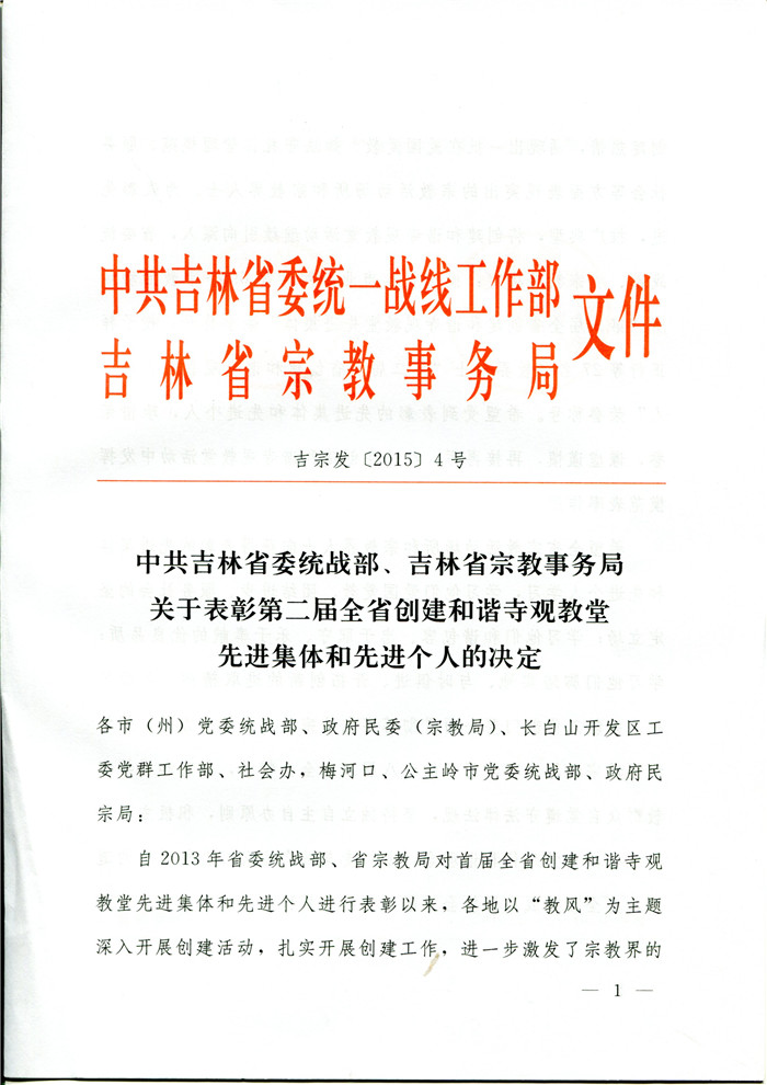 关于印发《吉林省寺观教堂和其他固定宗教活动处所区分标准》的通知11-24