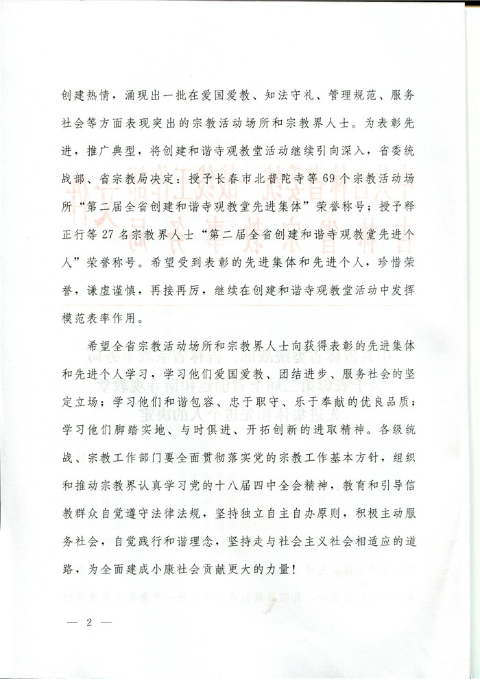 第二届全省创建和谐寺观教堂先进集体和先进个人的决定