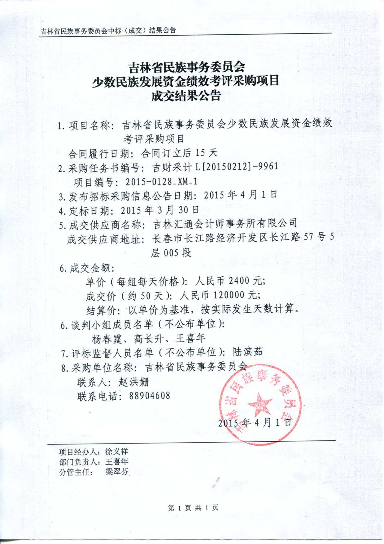 少数民族发展资金绩效考评采购项目成交结果公告