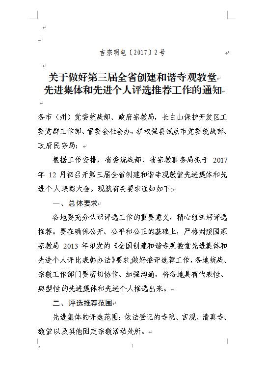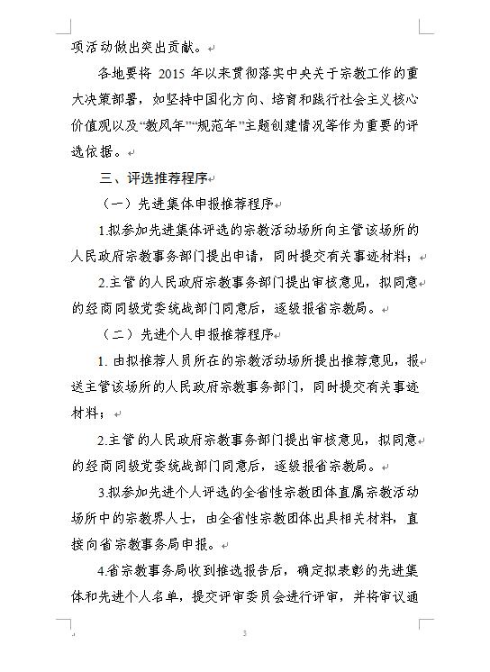关于做好第三届全省创建和谐寺观教堂先进集体和先进个人评选推荐工作通知 附件123.doc