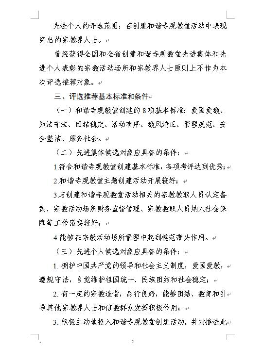 关于做好第三届全省创建和谐寺观教堂先进集体和先进个人评选推荐工作的通知
