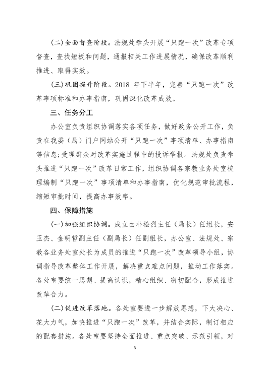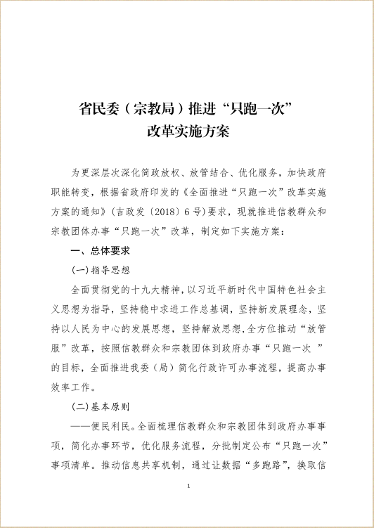 省民委(宗教局)推进“只跑一次”改革实施方案